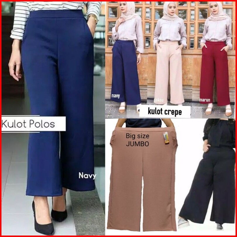 Celana Panjang Murah Wanita Kulot Crepe Polos Big Size L Xl Xxl Xxxl Jumbo8