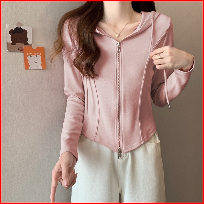 Btat Hoodie Zipper Wanita Crop Cardigan Crop Korean Style Pink Cardigan Crop Top Lucu