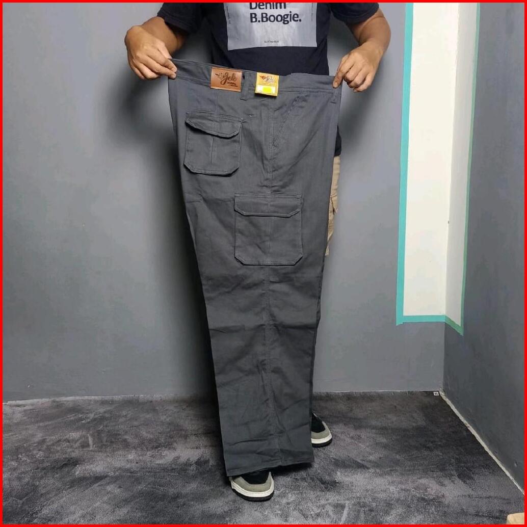 Celana Cargo Jumbo Panjang Pria Bigsize Strecht Melar