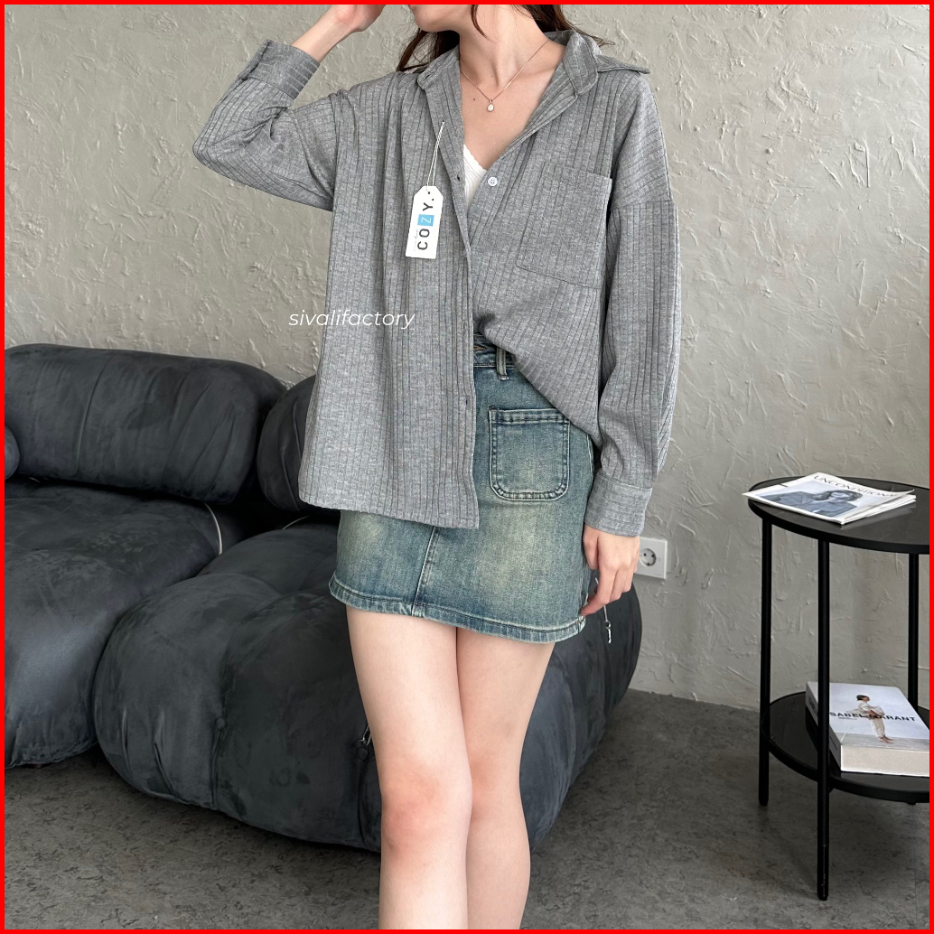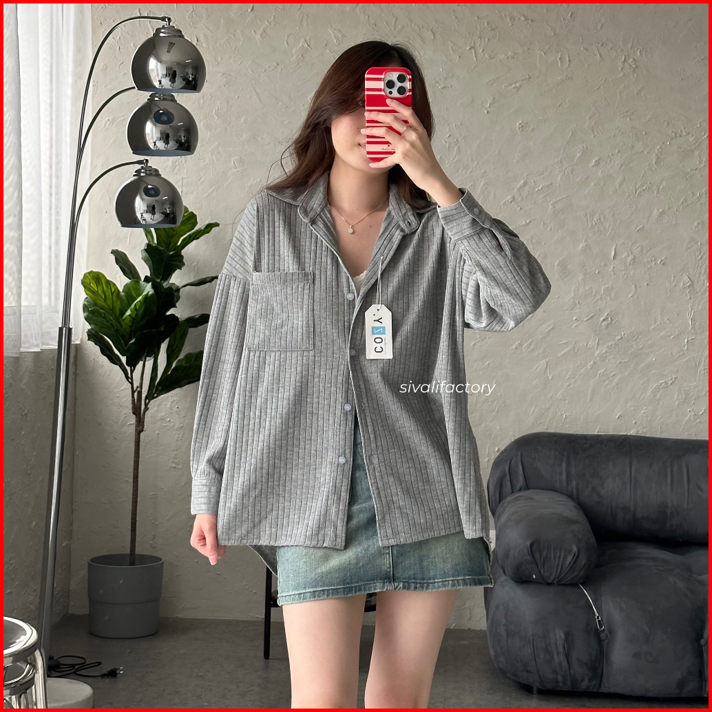 Sivali Cathy Shirt Kemeja Knit Oversized Wanita Lengan Panjang Atasan Kantor Casual Basic Loose Anti Kusut 997