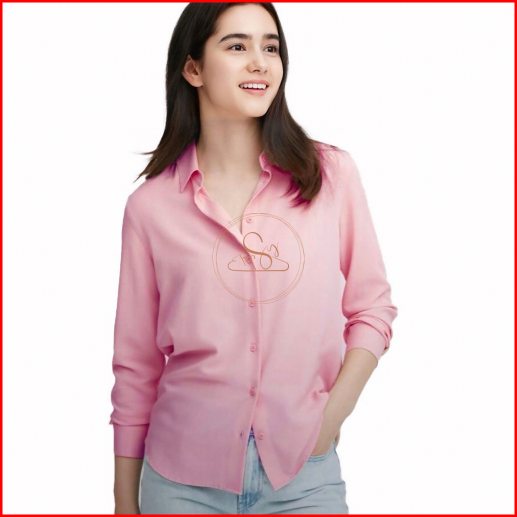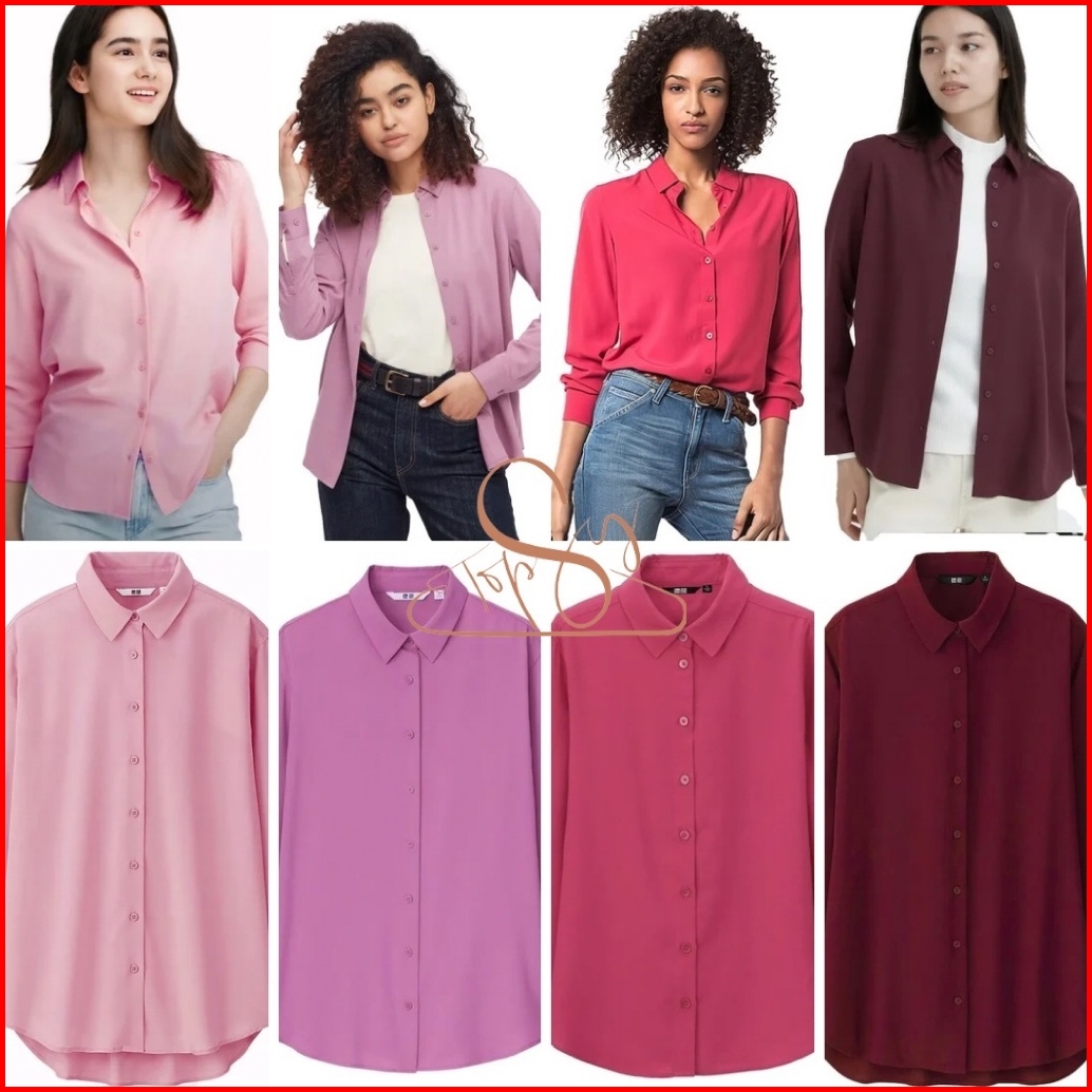 Uniqlo Kemeja Rayon Tangan Panjang Pink Edition