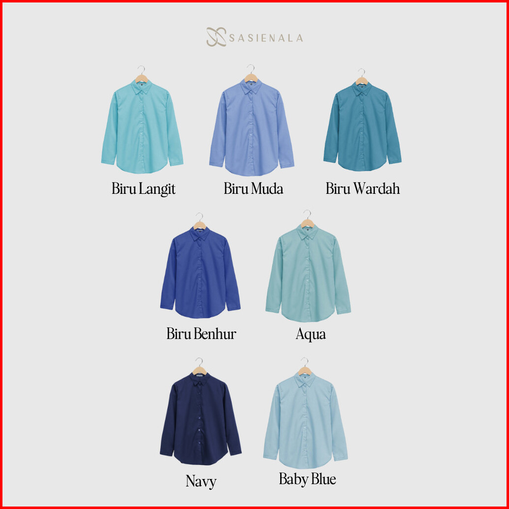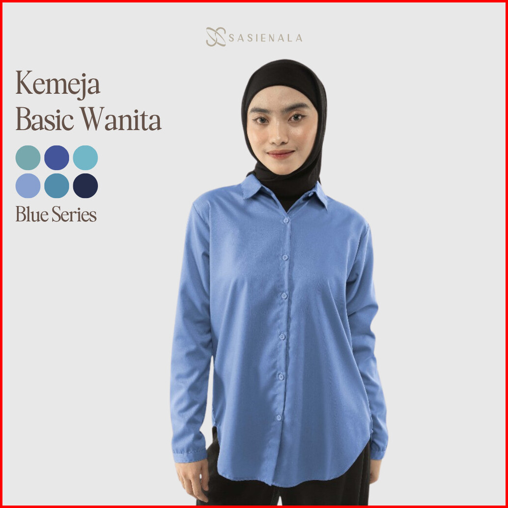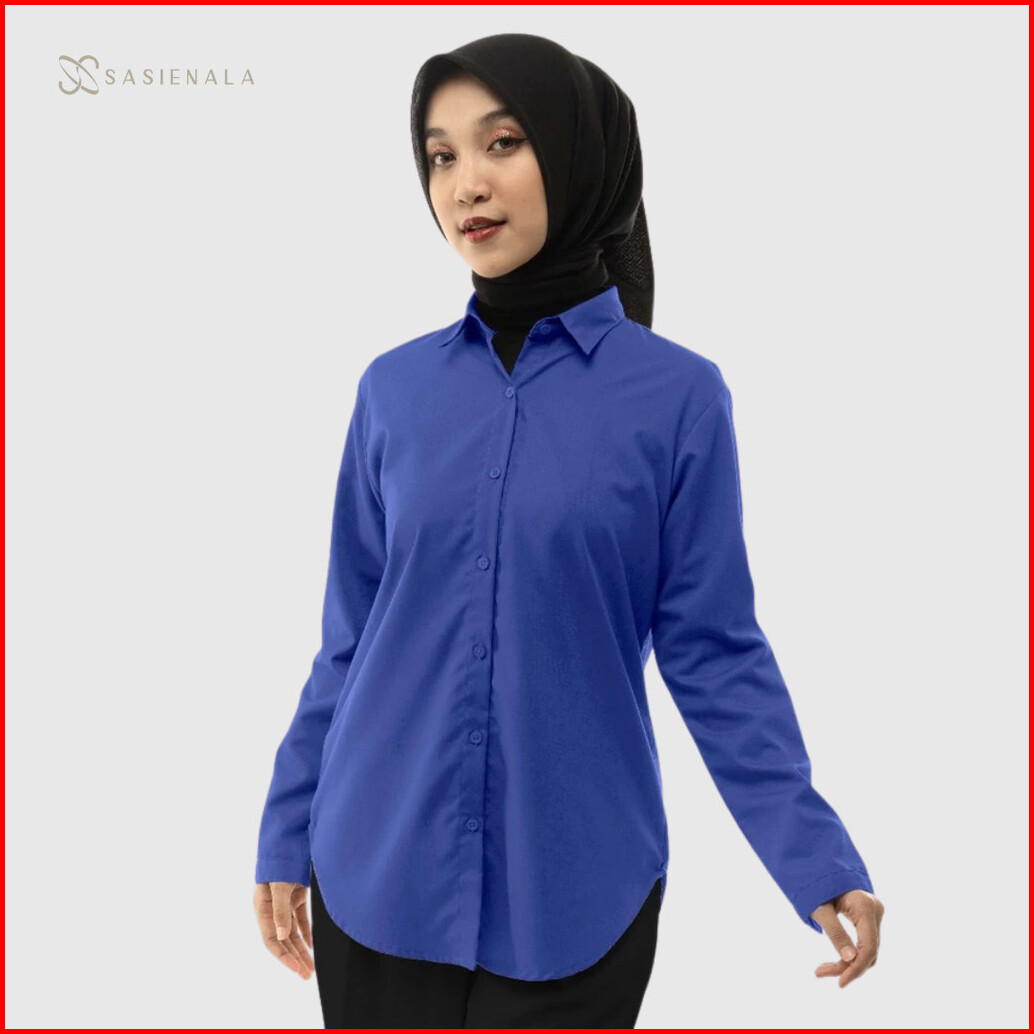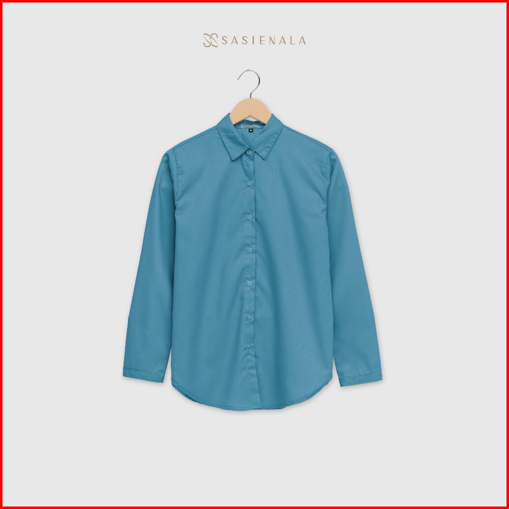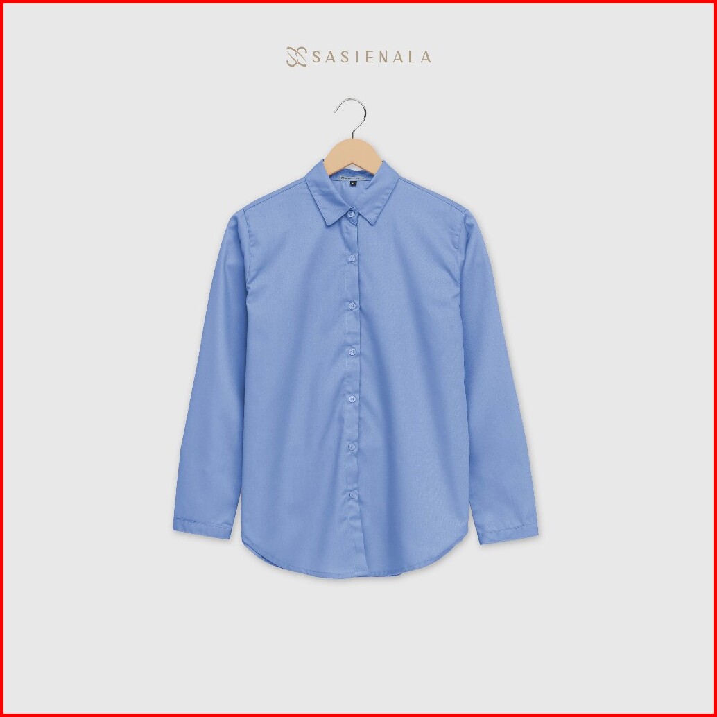 Sasienala Sn Basic Shirt Biru Series Kemeja Lengan Panjang Kemeja Wanita Kemeja Kerja