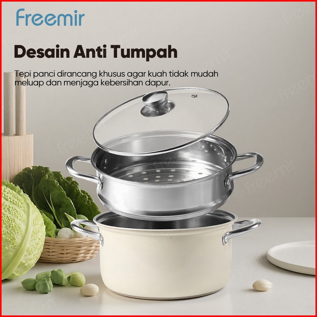 Flash Sale Freemir Panci Kukus 2 Susun 24 Cm Panci Stainless Steel 304 Panci Anti Karat Serbaguna