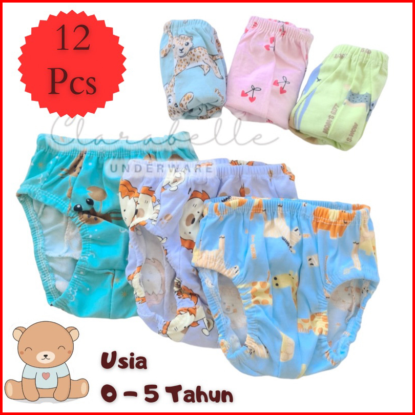 Clara - 12 Pcs Celana Dalam Anak Bahan Babydoll Velvet Libby Lembut Untuk Usia 1-5 Tahun Lusinan