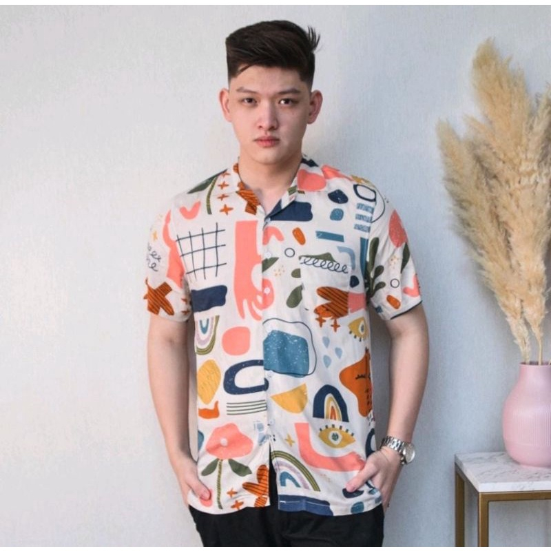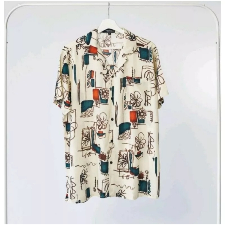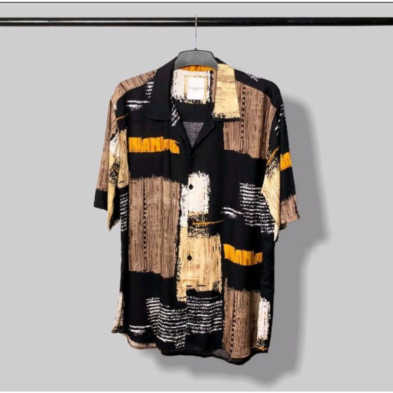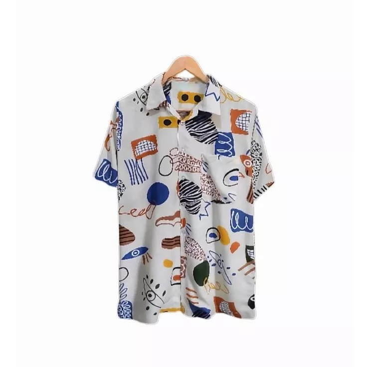 (Gratis Ongkir) Kemeja Pria Abstrak Vintage Casual Lengan Pendek Retro Bahan Rayon Viscose Import