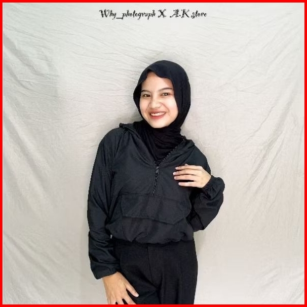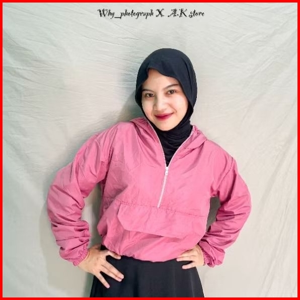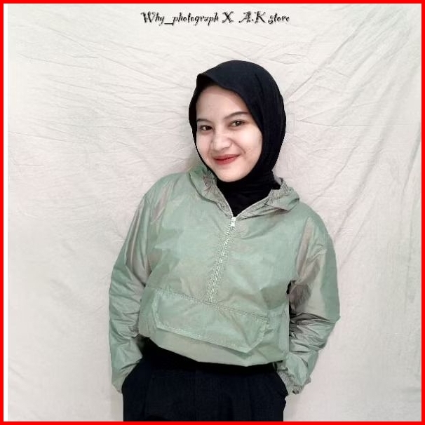 Jaket Olahraga Crop Wanita Parasut Dengan Saku Depan Sport