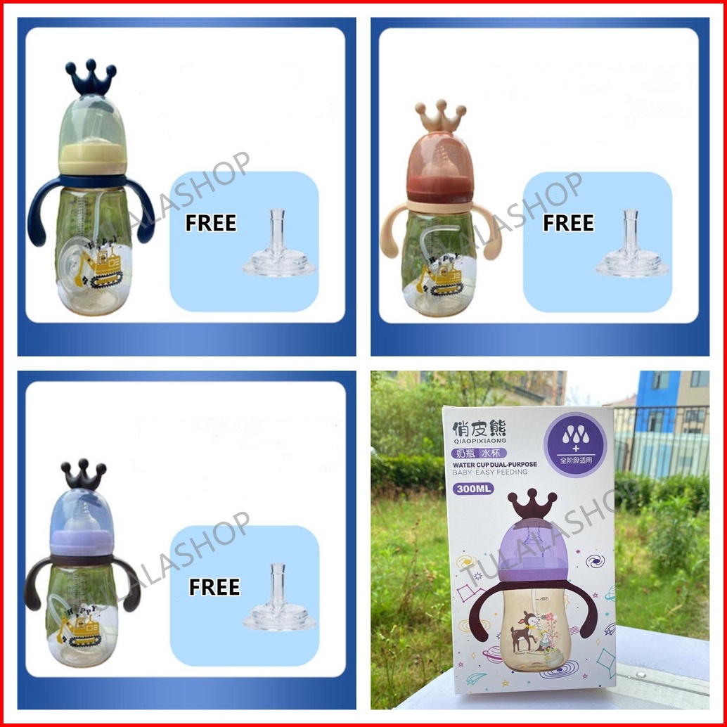 Tulala Shop Botol Minum Anak Botol 2 In 1 Dot Dan Sedotan Karakter Rabbit Bear Tutup Clip Import Botol Kartun 300ml Boto