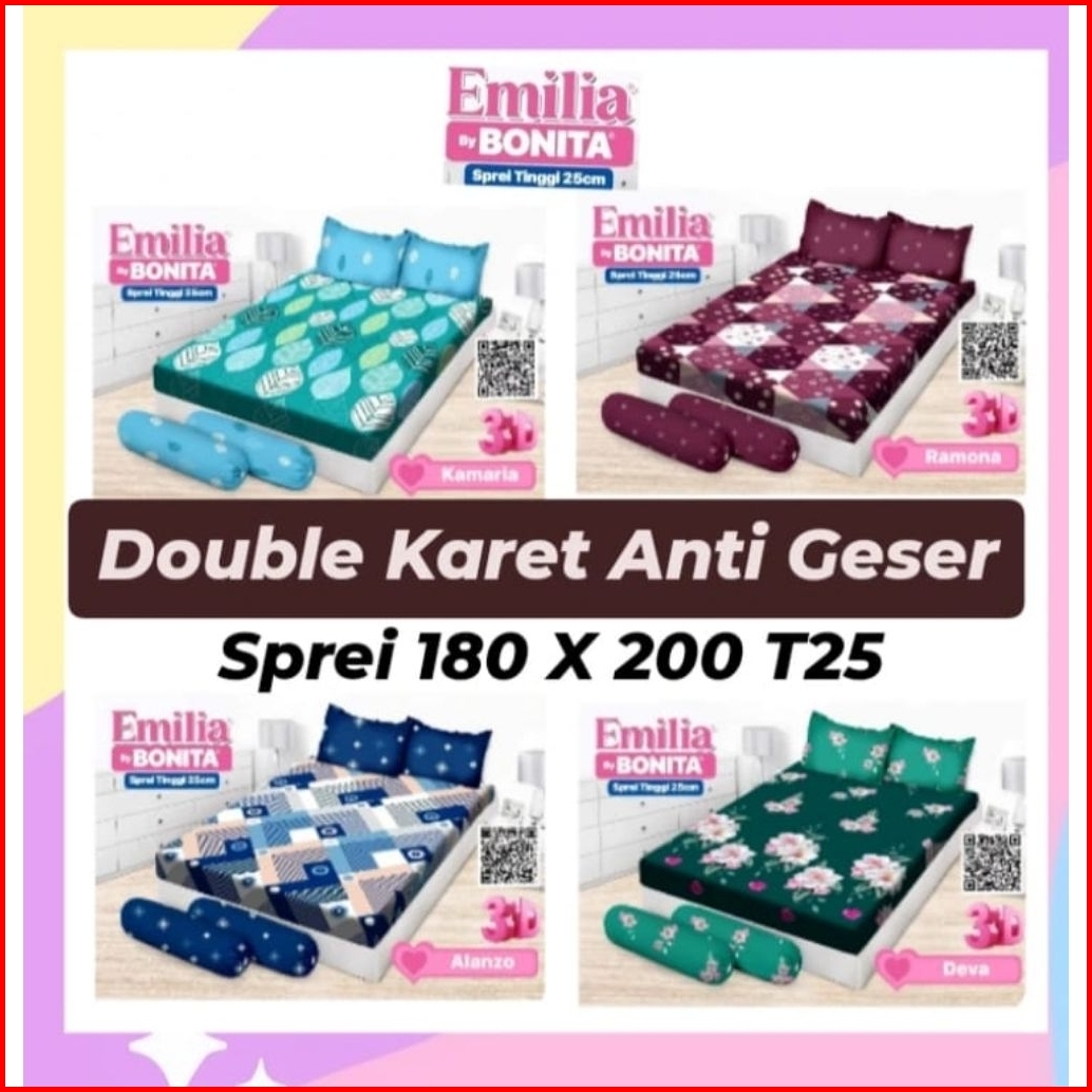 Sprei Bonita 180x200 Emilia Tinggi 25cm Seprei Bonita King Size Motif Lembut Adem Halus Nyaman