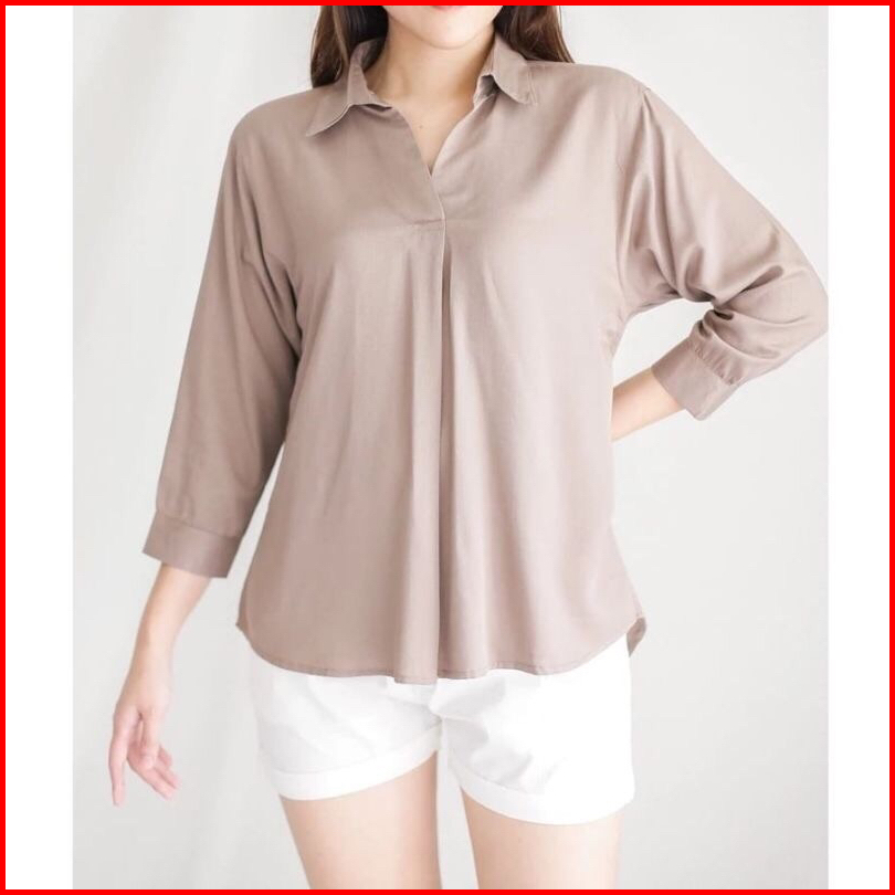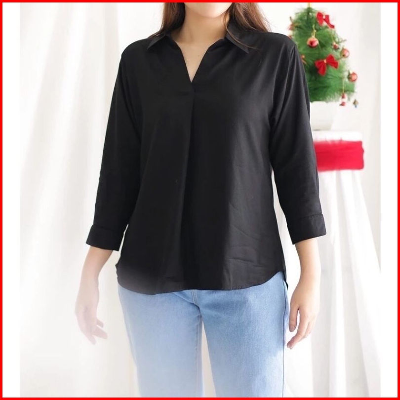 Aluna Basic Blouse Kemeja Rayon Wanita Blouse Polos Bahan Rayon Twill