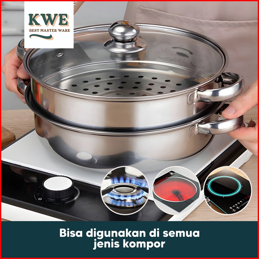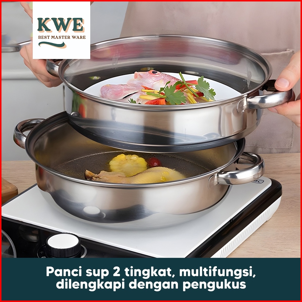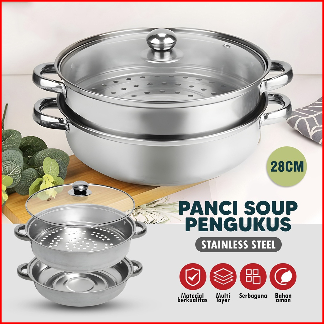 Kwe Panci 2 Susun Besar Kukus Steamer Stainless 28cm Panci Kukus Set Panci Sup Steamer Ikan Bakpao Siomay Tebal Dandang