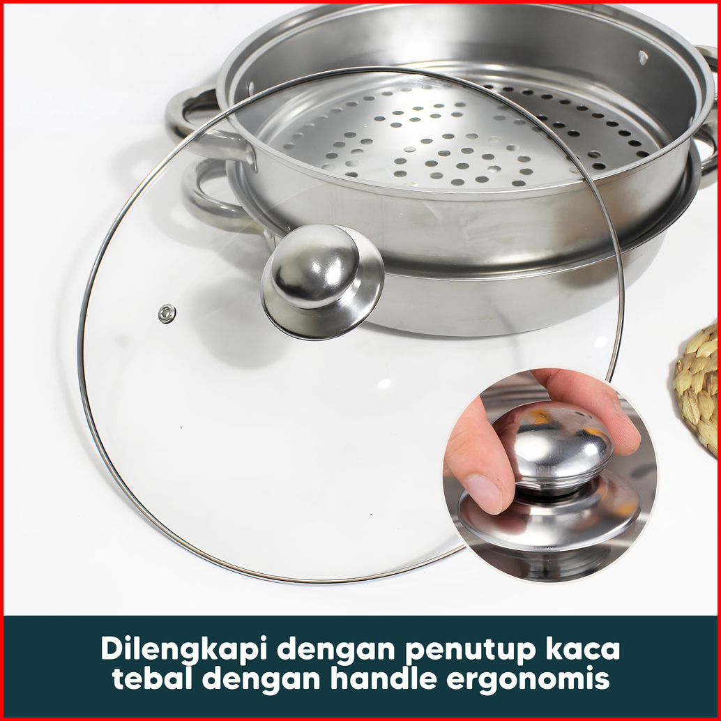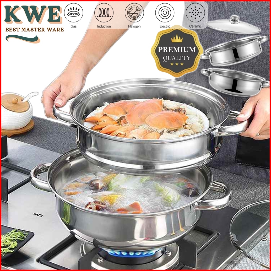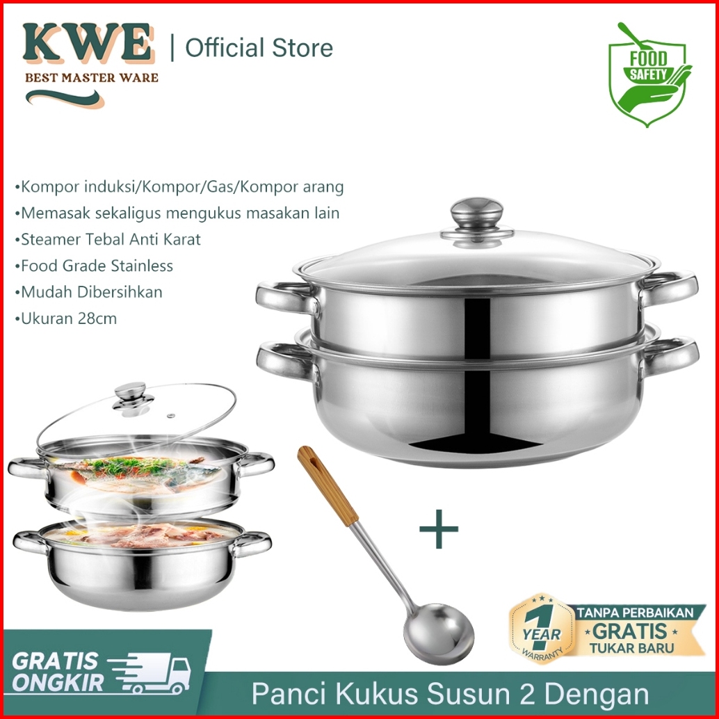 Kwe Panci 2 Susun Besar Kukus Steamer Stainless 28cm Panci Kukus Set Panci Sup Steamer Ikan Bakpao Siomay Tebal Dandang