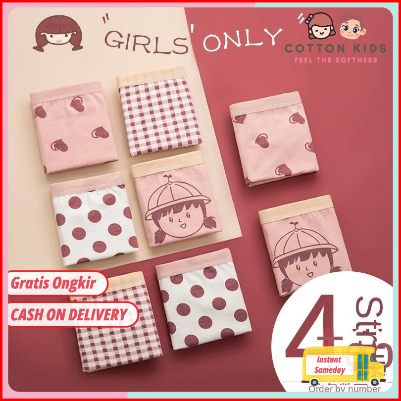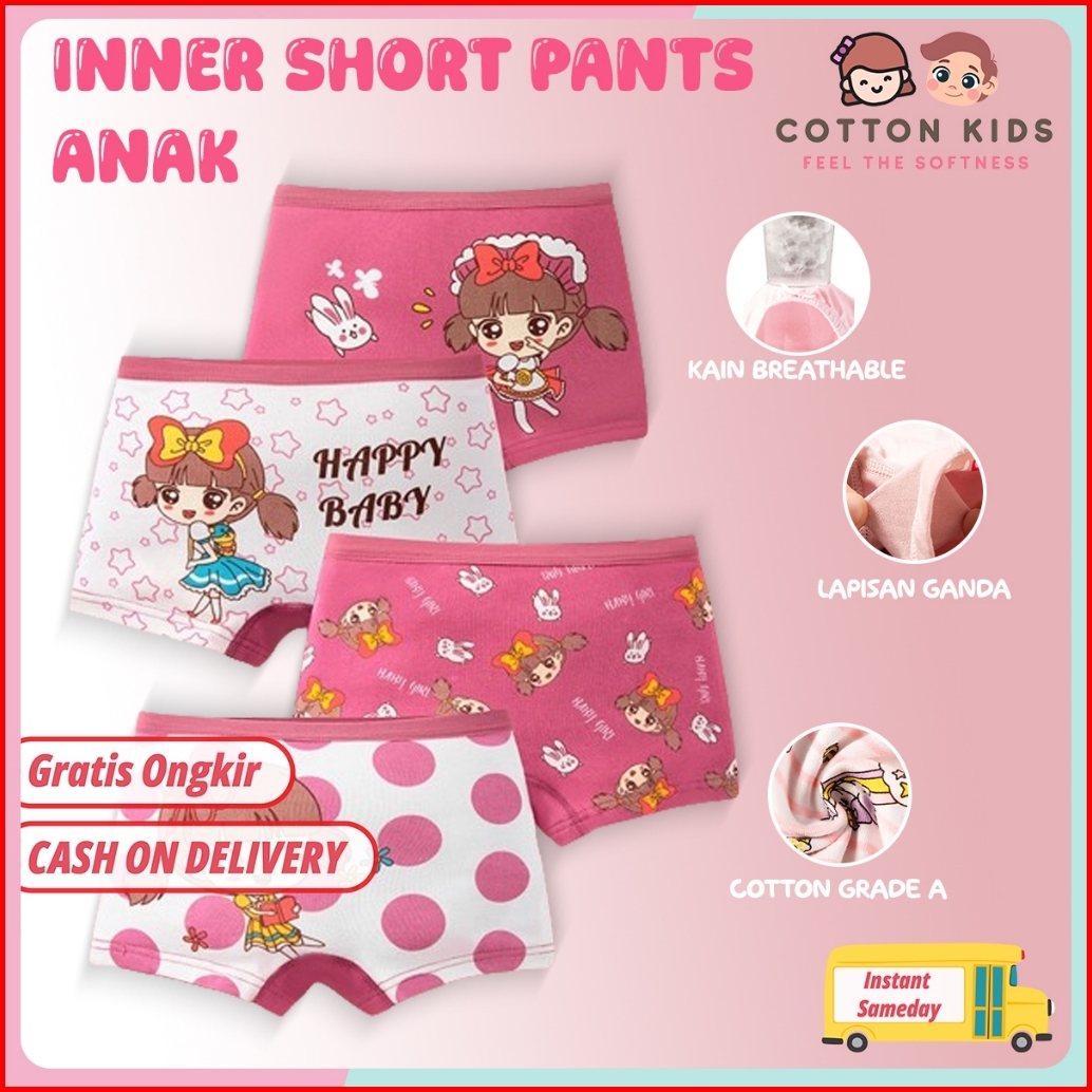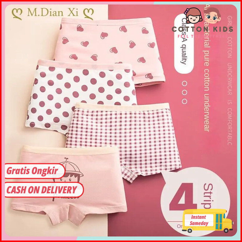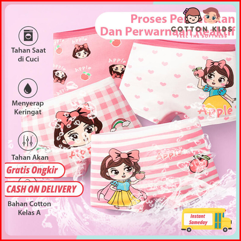 Cotton Kids Celana Dalam Anak Perempuan Boxer Anak Perempuan Motif Princess Underwear Cewek 4pcs