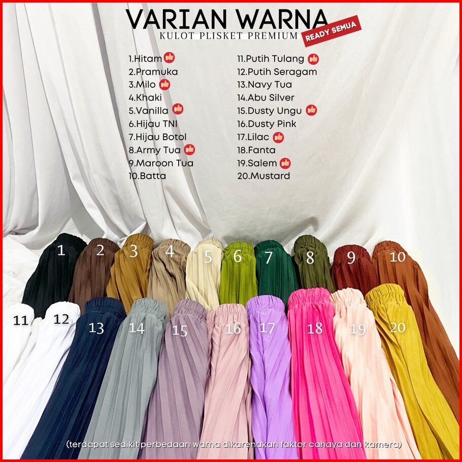 Celana Kulot Plisket Premium 100 Ekslusif 20 Warna Terbaru