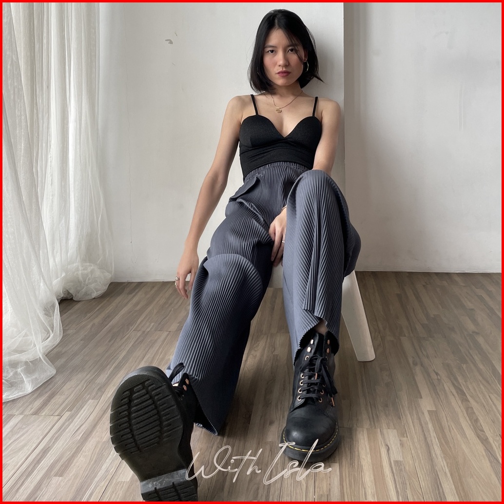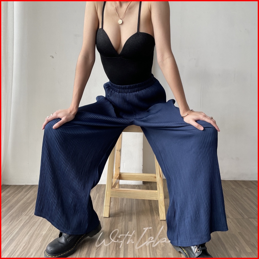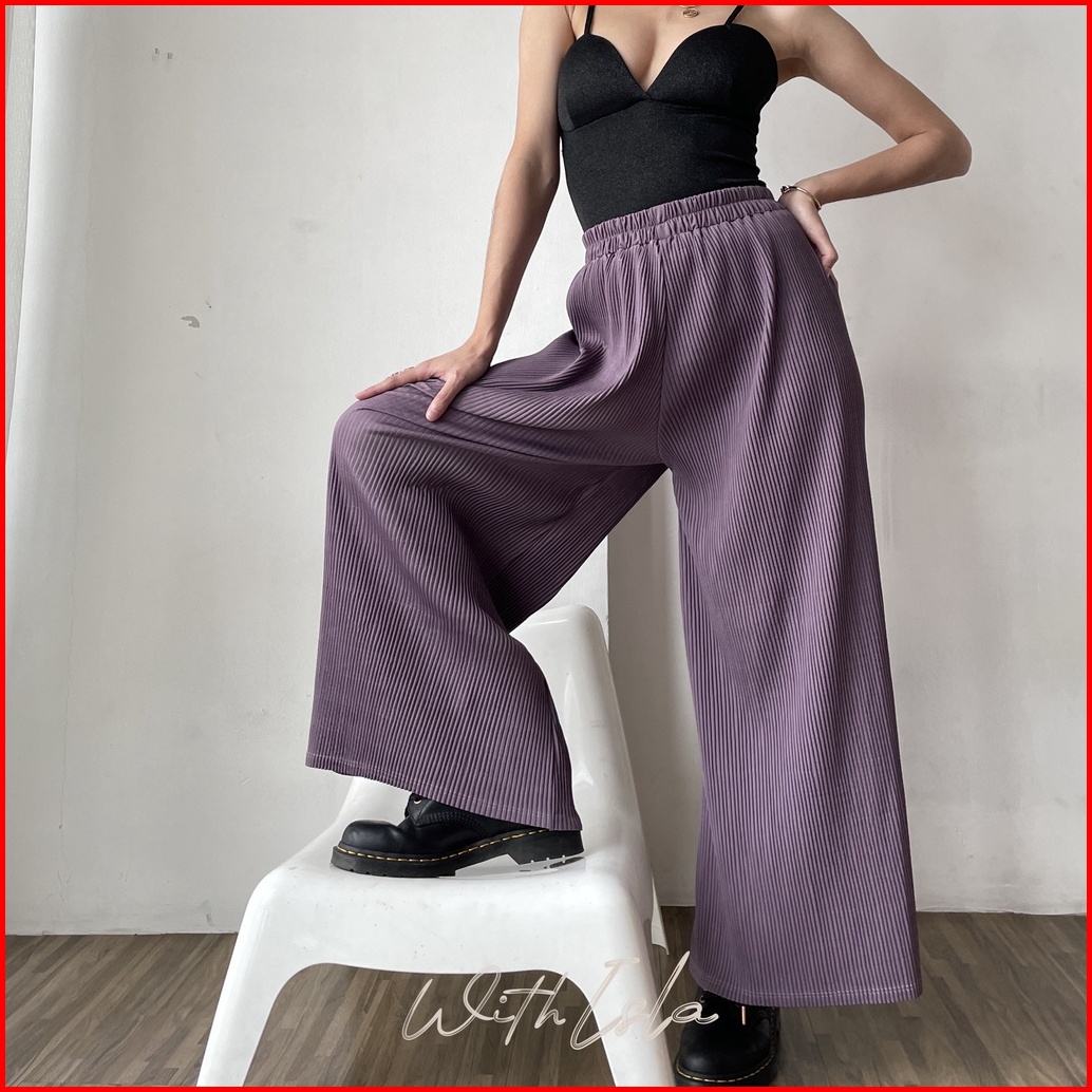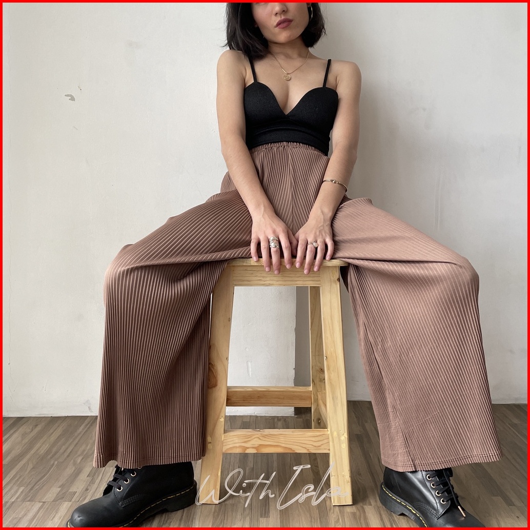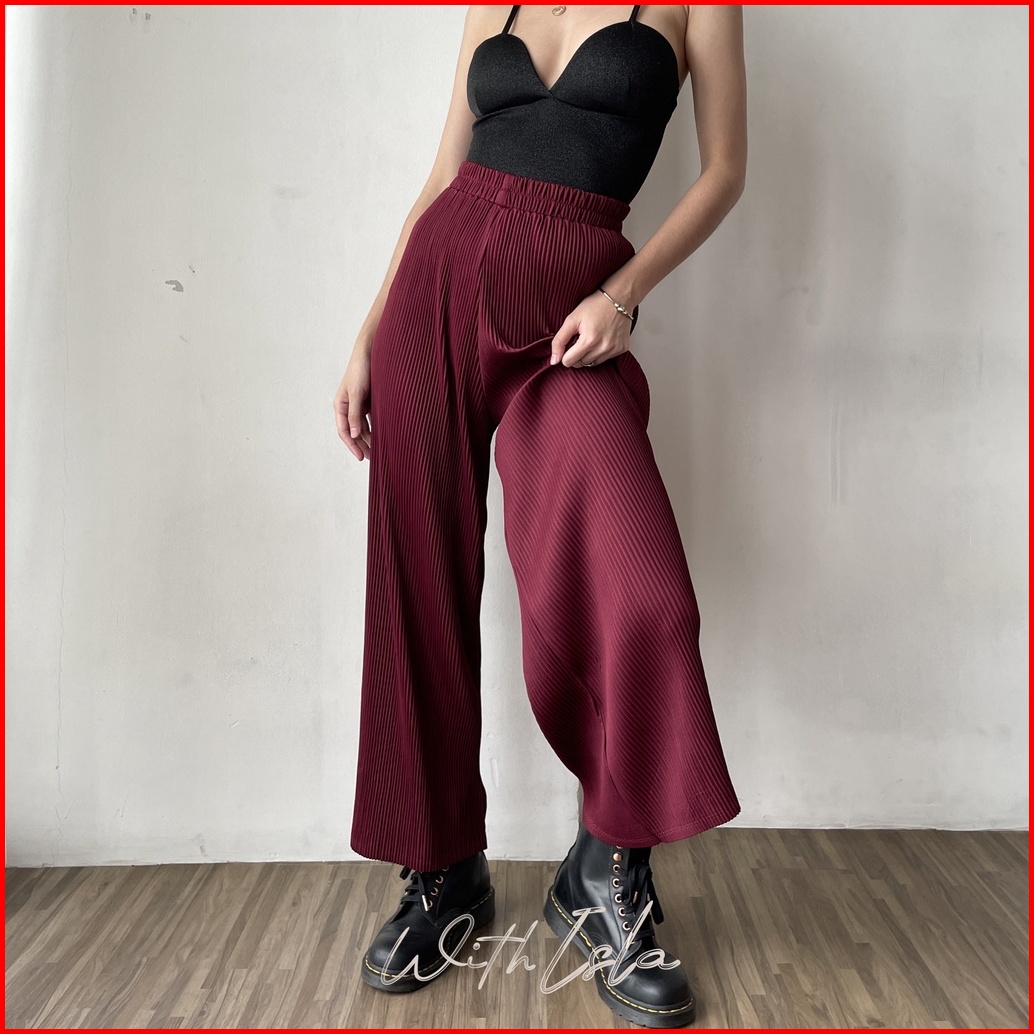 With Isla - Gigi Pleats Kulot Celana Panjang Kulot Plisket Wanita