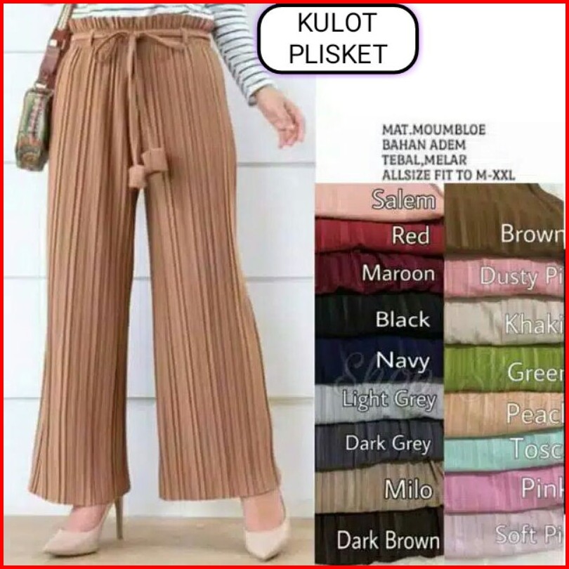 Plisket Maroon, Plisket Navy, Plisket Army, Plisket Silver, Plisket Pink, Plisket Abu-abu, Plisket Taro, Plisket Mustard, Plisket HIjau Botol, Plisket Hitam, Plisket Mocca, Plisket Coklat manis, Kulot Pendek Random, Plisket Lilac