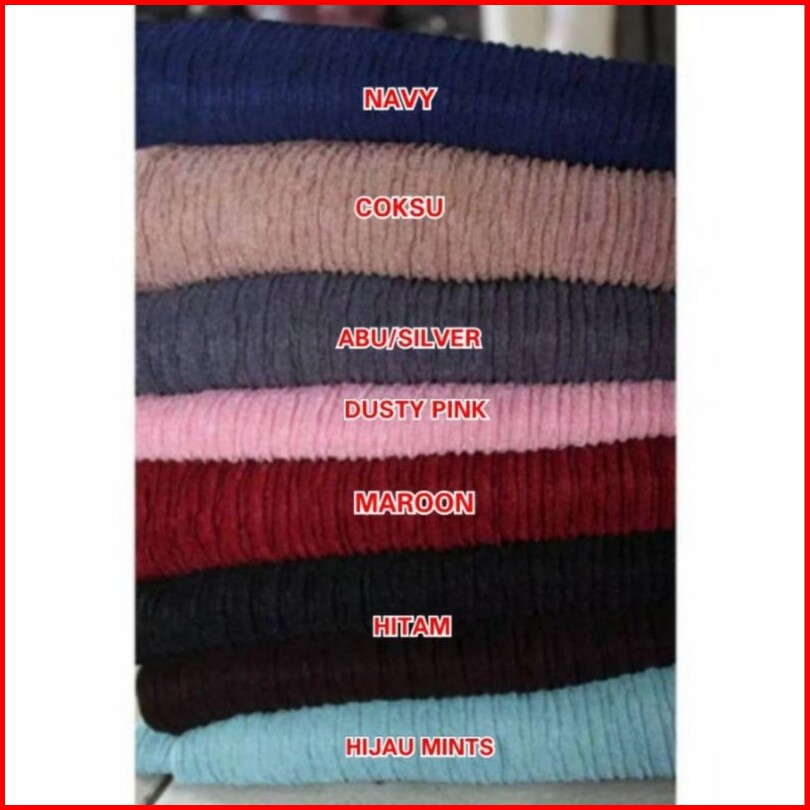 Hitam, Coksu/Moca, Navy, Maroon, Coklat Tua, Abu Tua, Dusty pink, Abu Muda, Putih, Salur Coksu/Moca, Salur Navy, Salur Coktu, Salur Maroon, Salur Abu Tua, Salur Abu Muda, Salur Pink