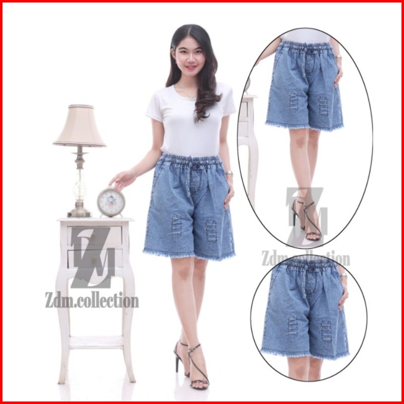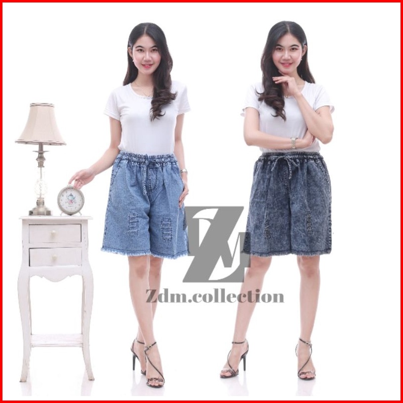 Celana Pendek Wanita 3 4 Standar Jumbo Rawis-sobek Snow Blue Black All-size Fit To M L Xl Xxl