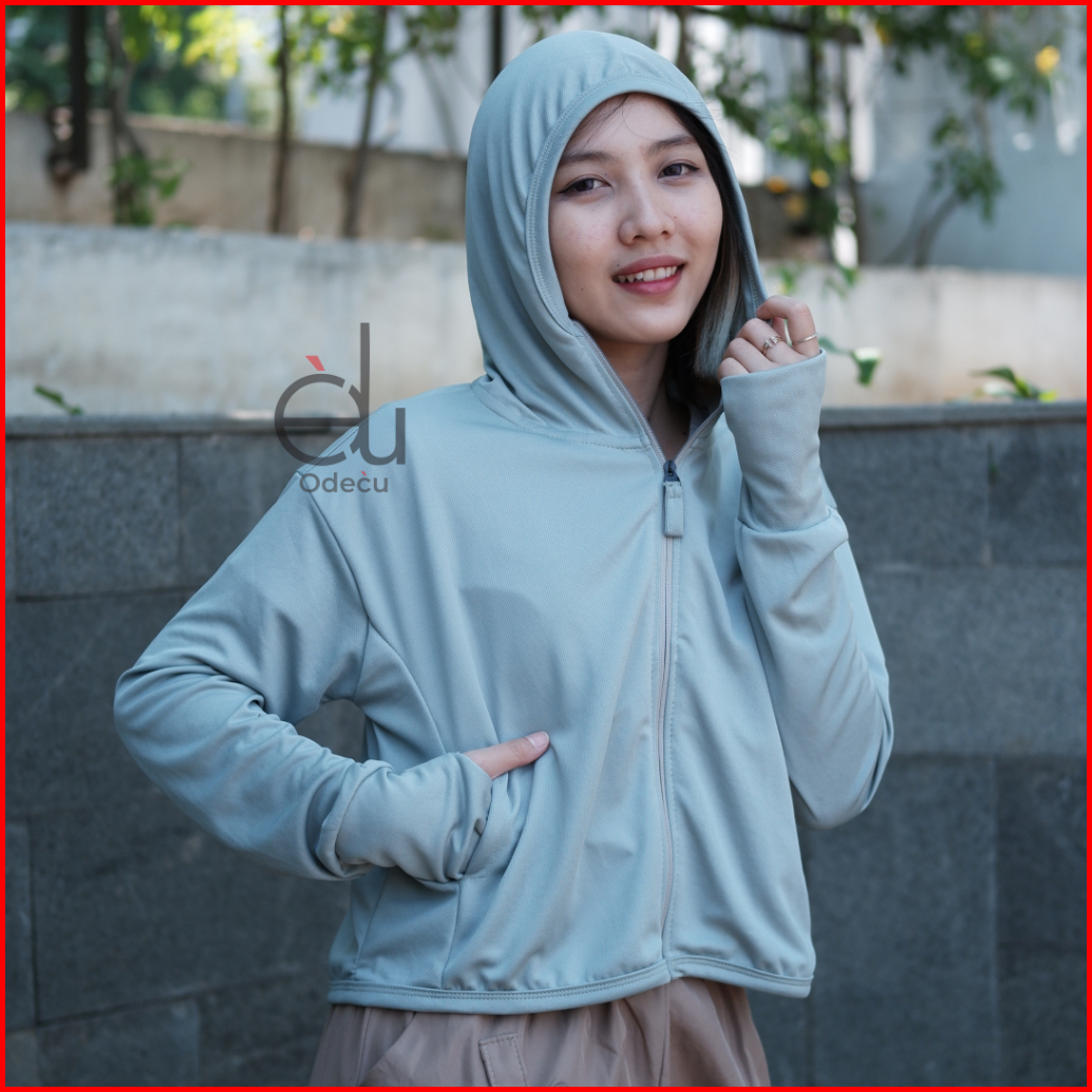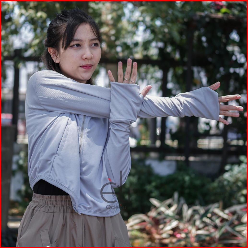 Odecu Jaket Olahraga Running Yoga Fitness Jogging Outdoor Wanita Crop Anti Uv Sinar Matahari Tipis Adem Nyaman