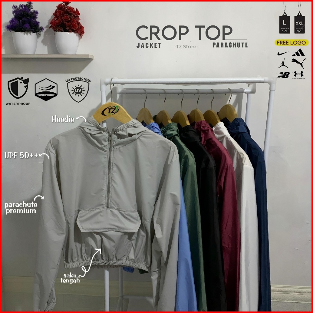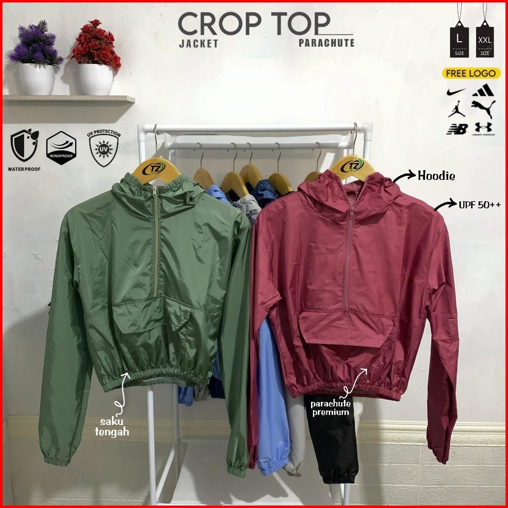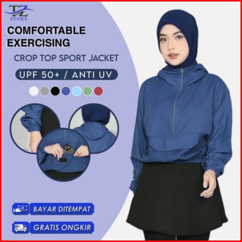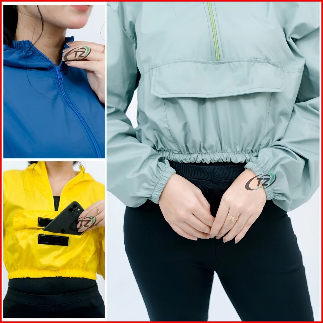 Jaket Olahraga Wanita Crop Polos Hoodie Crop Top Waterproof Anti Uv