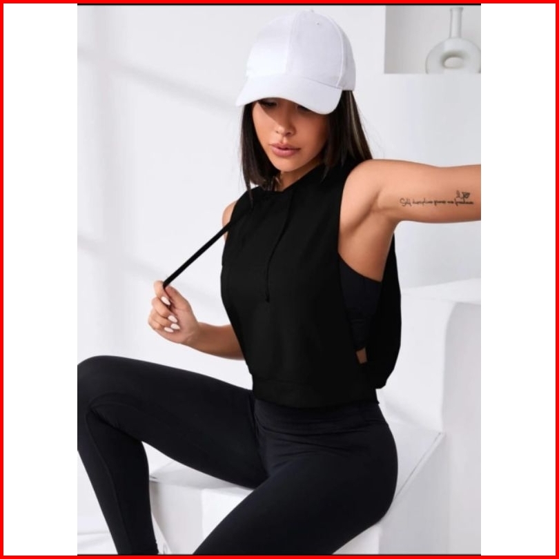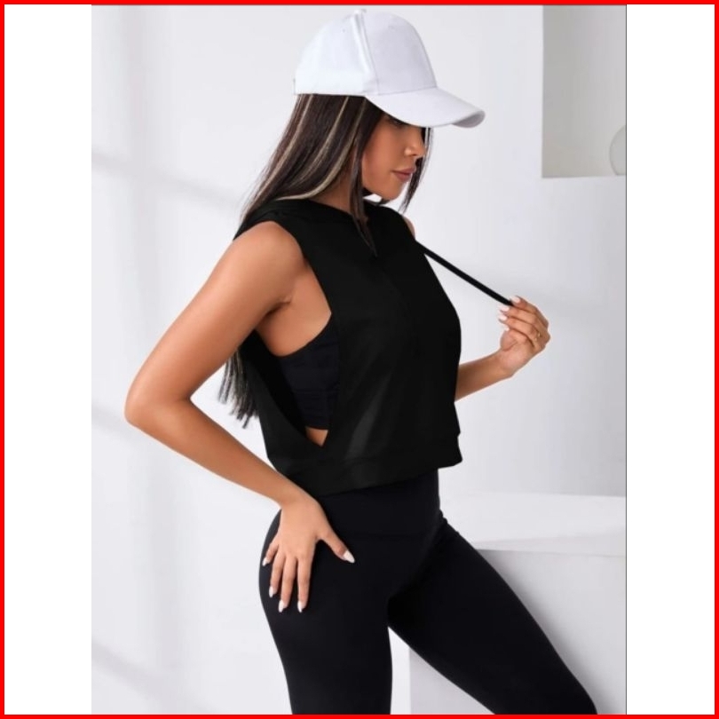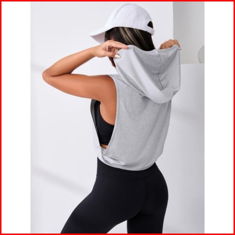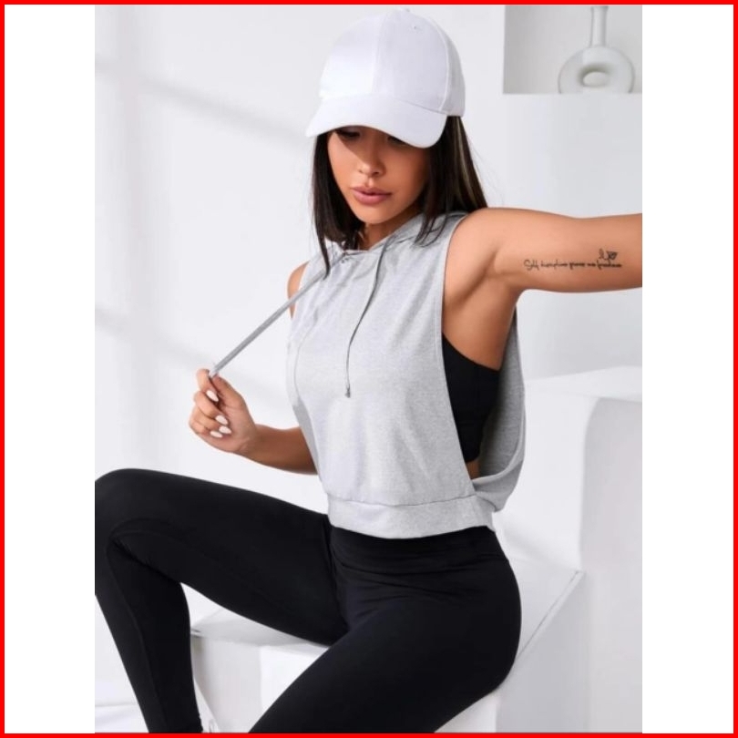 Rompi Croptop Sport Hodie Crop Korea Atasan Olahraga Wanita Vest Oversize
