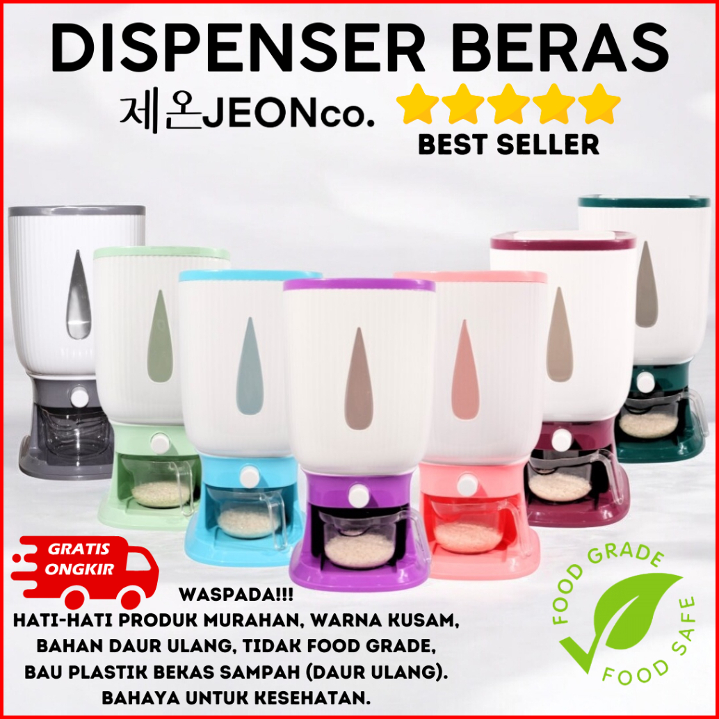 Dispenser Beras Modern 10kg Tempat Penyimpanan Dispenser Otomatis Food Grade Biji Bijian Multifungsi