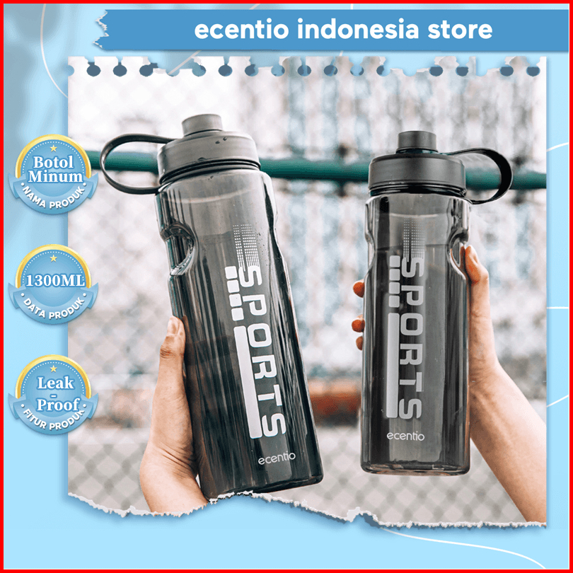 Ecentio 1300ml Botol Air Minum Anti Tumpah Sports Dengan Sekolah Bottle Portable Tempat Air Minum Olahraga Botol Minum J