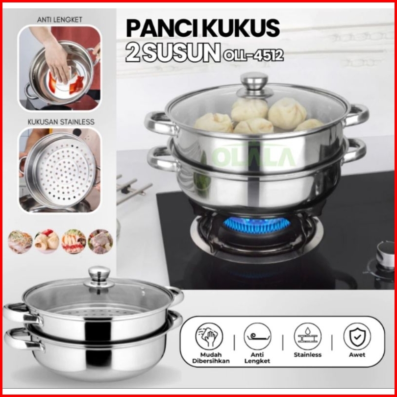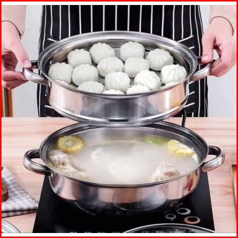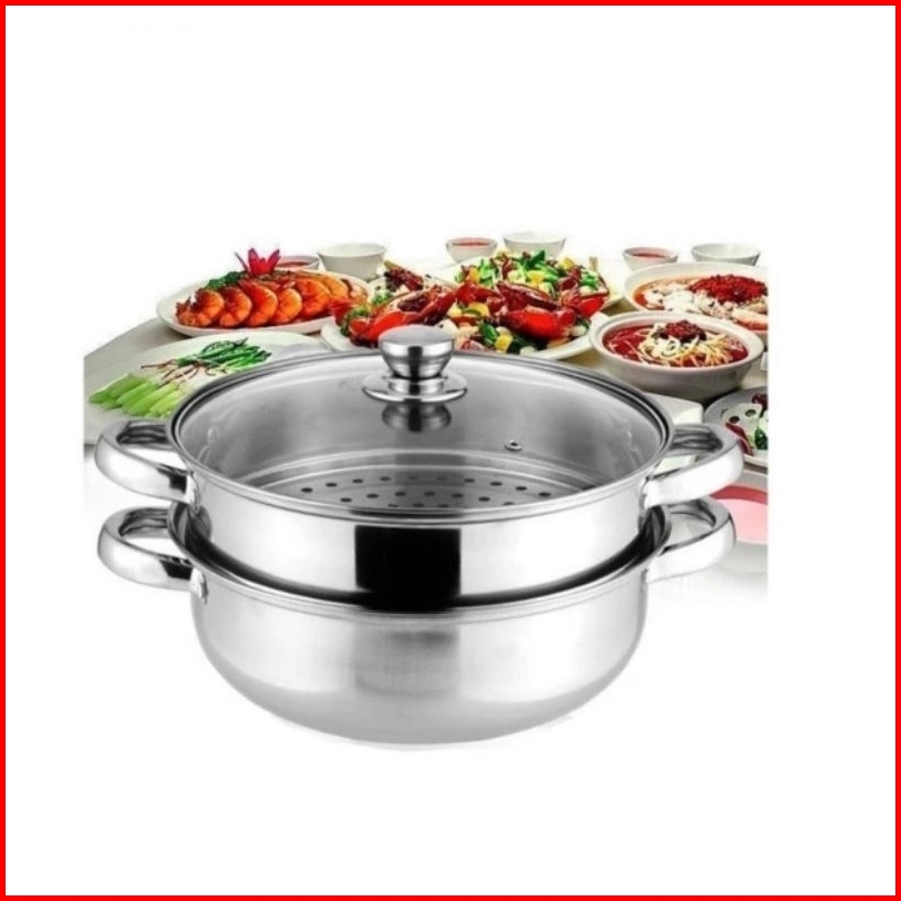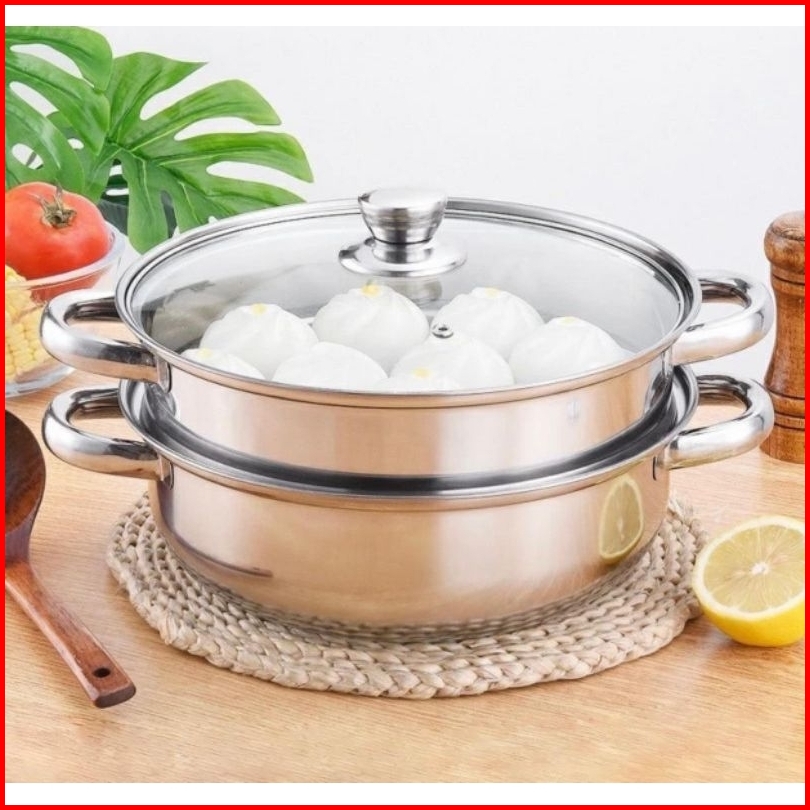 Panci Kukus Stainless Steel 28 Cm Dandang Steamer Kukus Ikan Siomay Dimsum 2 Susun Stainles