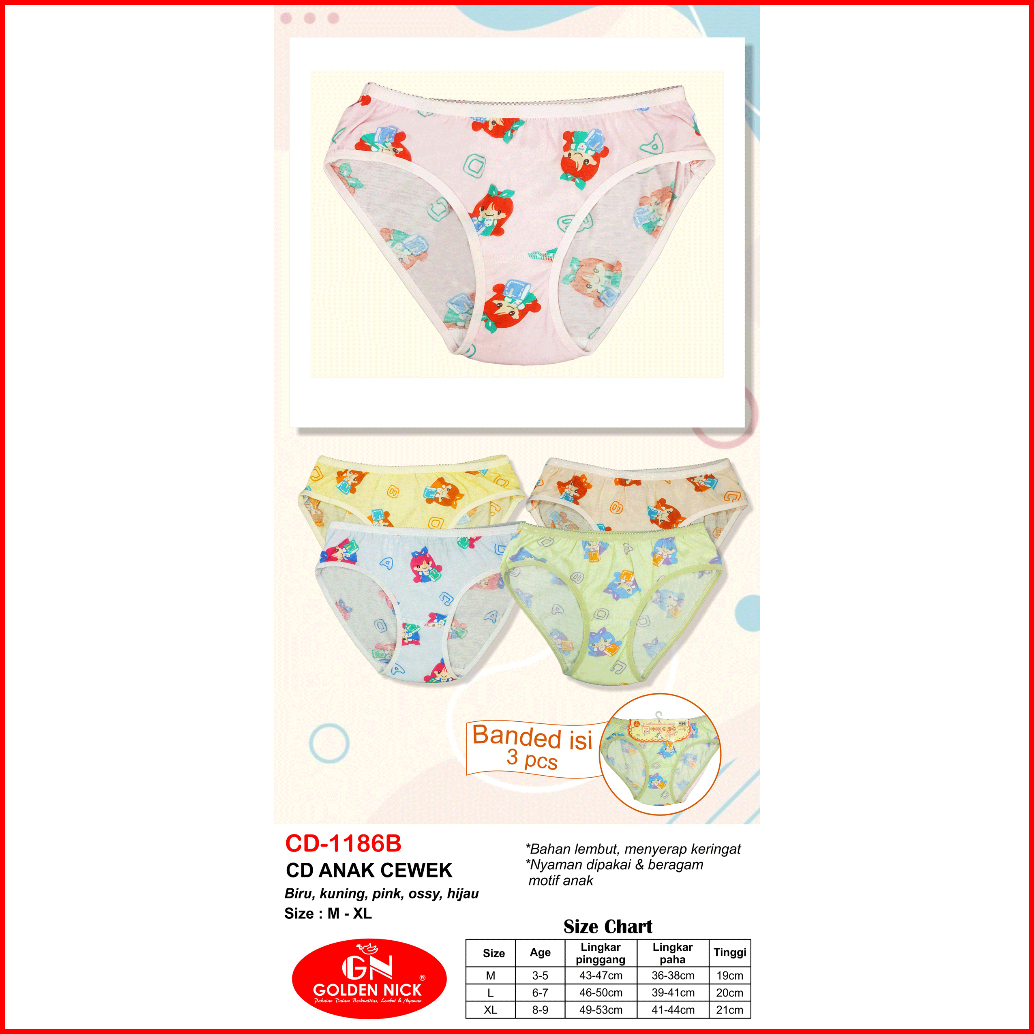 6 Celana Dalam Anak Perempuan Gna 1188 - Golden Nick Cd Motif Bordir