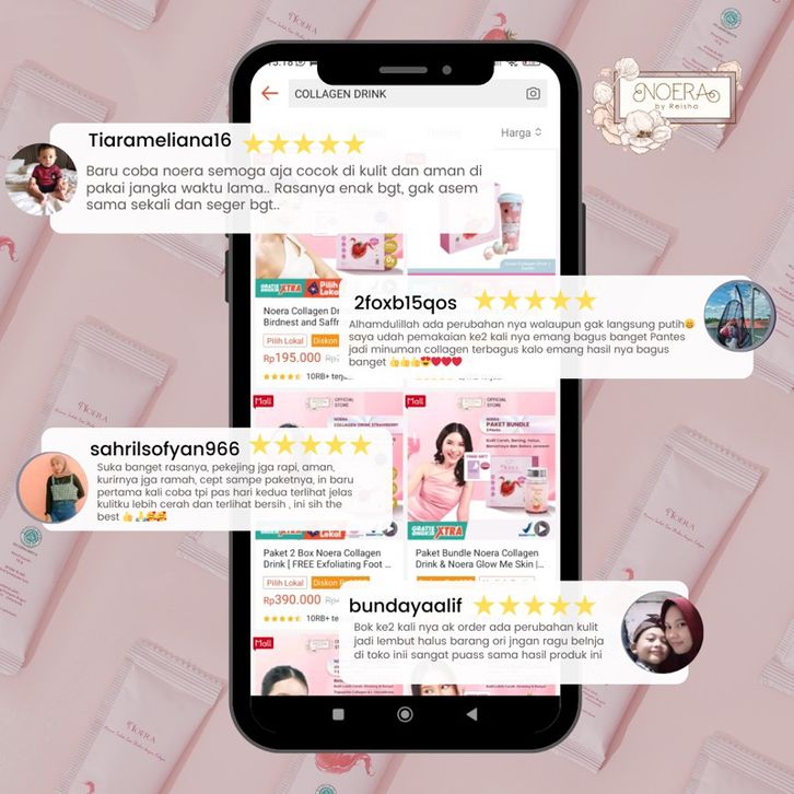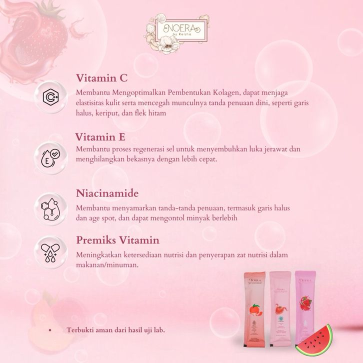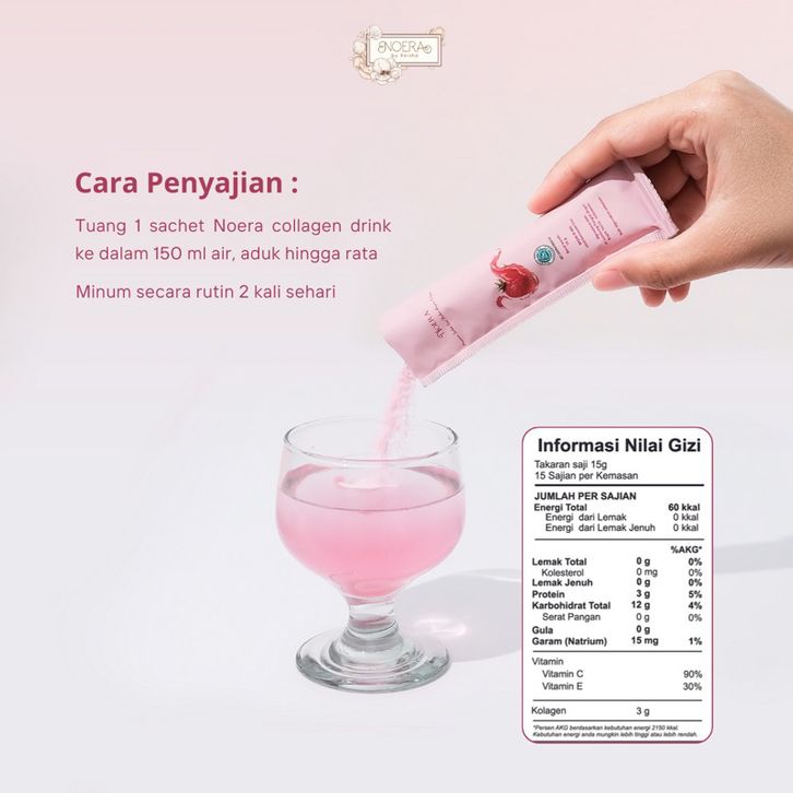 NOERA COLLAGEN DRINK STRAWBERRY WITH BIRDNEST AND SAFRON EXTRACT IMPROVED FORMULA MINUMAN KOLAGEN PENCERAH BADAN