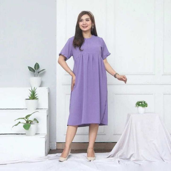 (Gratis Ongkir) Daster crinkle airflow retsleting depan busui frenly dress crinkle polos