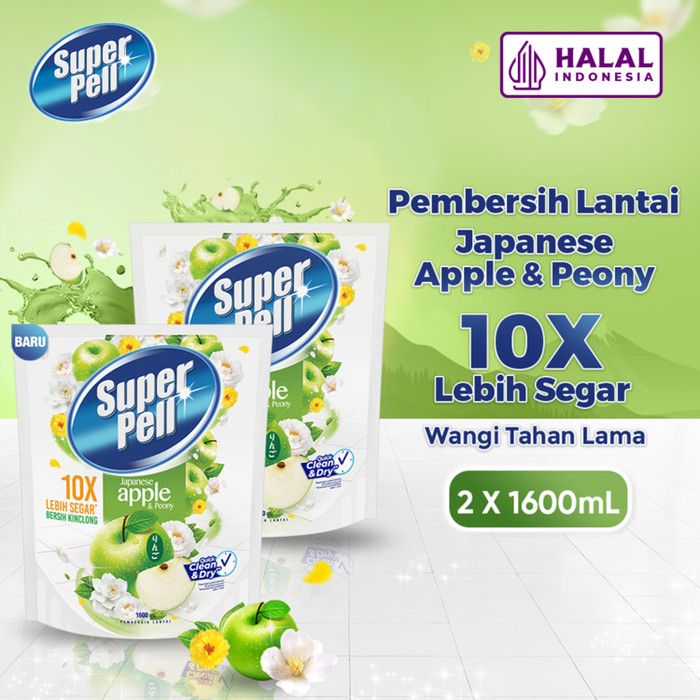 Super Pell Pembersih Lantai Fresh Apple 1600Ml Twin Pack