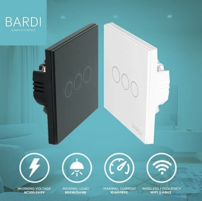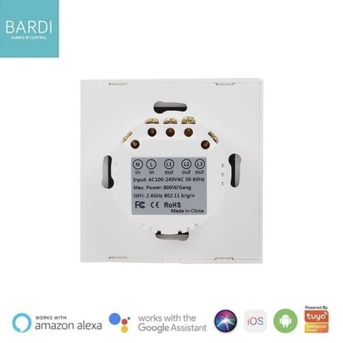 BARDI SMART WALL SWITCH 3 GANG EU WIFI TOUCH - SAKLAR LAMPU PINTAR - PUTIH