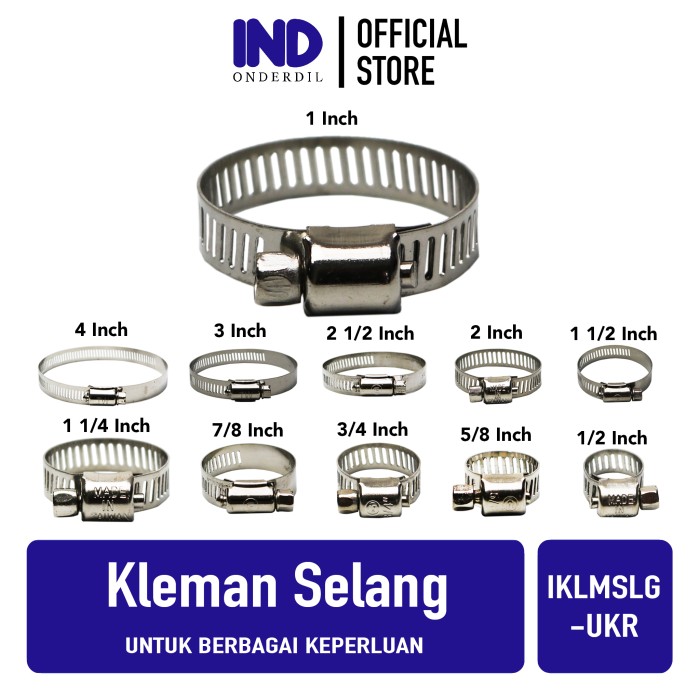 KLEM-KLEMAN SELANG STAINLESS STEEL PENGENCANG-PENGIKAT 1 2 4 INCH - 5/8 INCH