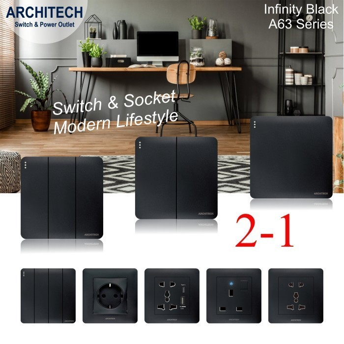 SAKLAR / SAKELAR LAMPU ARCHITECH INFINITY A63 2.1 BLACK SERIES NEW - 1 GANG 1 ARAH