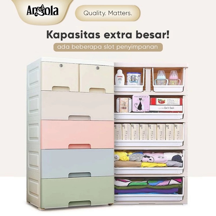 Lemari Baju ANGOLA Lemari Plastik Pakaian 5 Tingkat C68 Laci Susun/Cabinet Plastik Rak Susun Penyimpanan Baju
