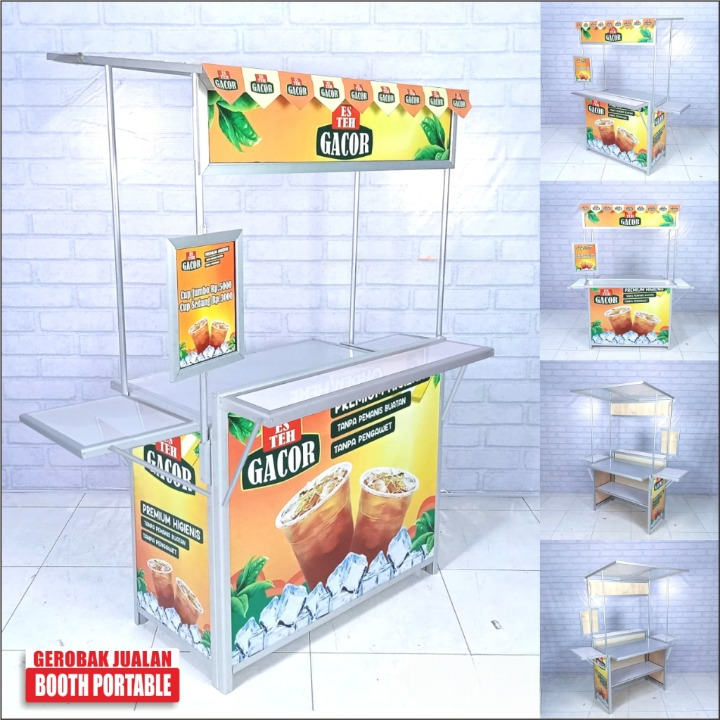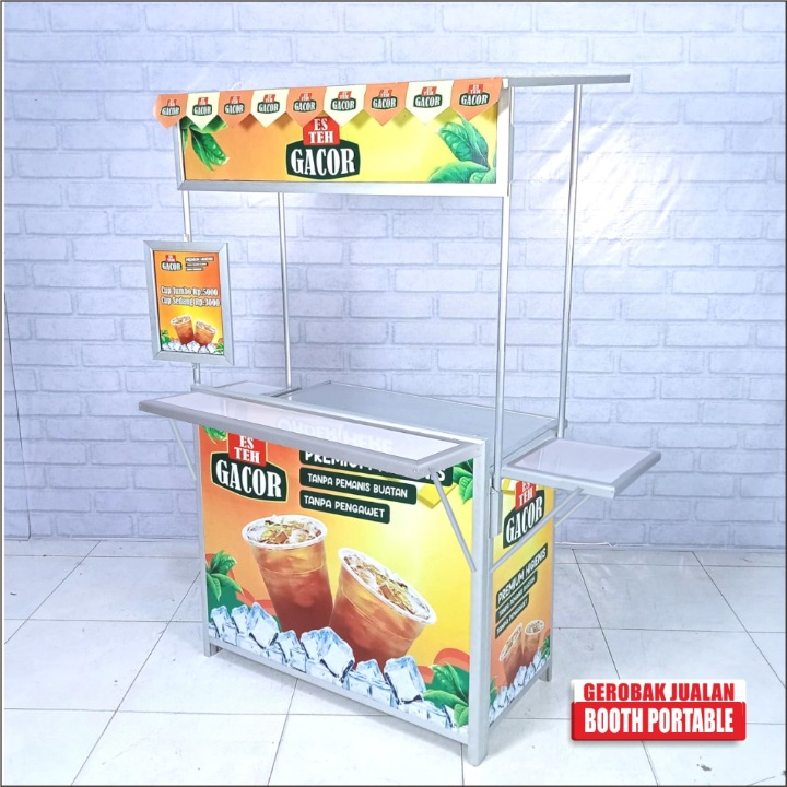 Booth Portable Jualan Meja Lipat Jualan Full Meja Tambahan Plus Atap Gerobak Jualan Lipat