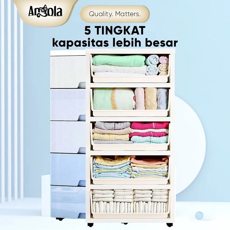 Lemari Baju ANGOLA Lemari Plastik Pakaian 5 Tingkat C05/C68/G15 Laci Susun / Storage Cabinet