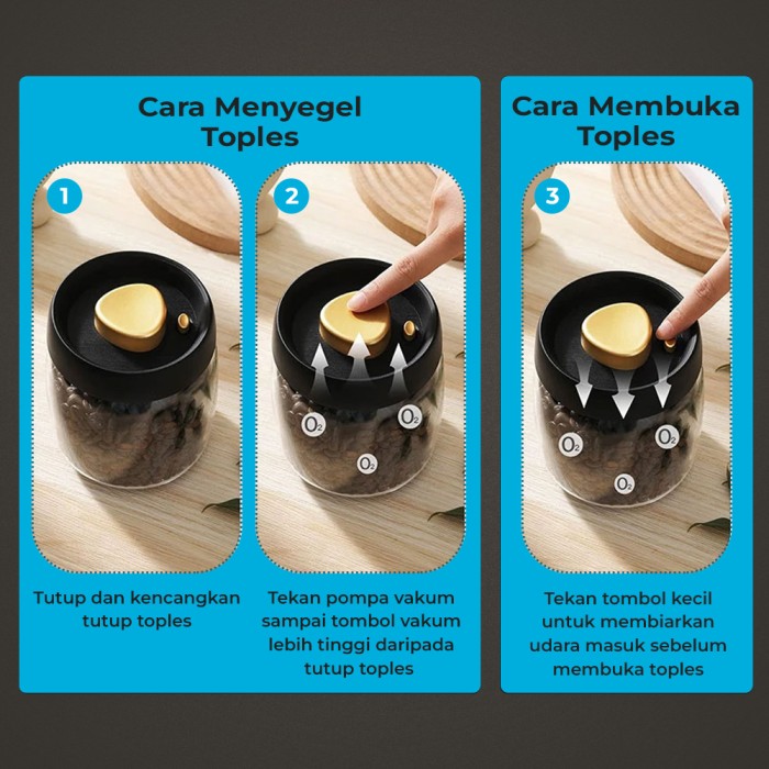 TOPLES KACA COFFEE BEANS VACUUM SEALED LID - SE41 - 1200MILI