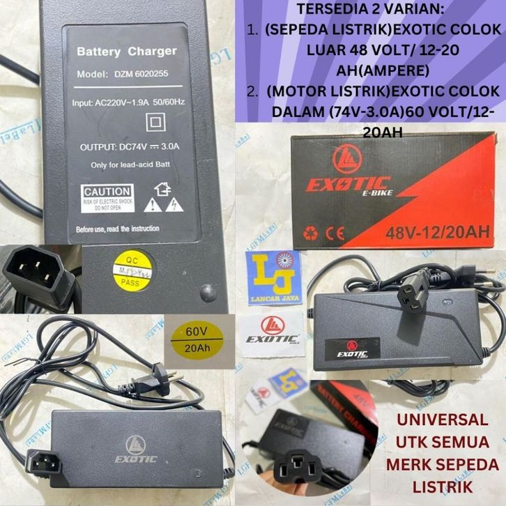 EXOTIC Charger Sepeda Listrik Selis/ MOTOR LISTRIK 48V-12/20AH & 60V-12/20AH Merk Universal GODA,