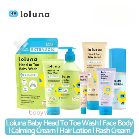 Loluna Head To Toe Baby Wash / Face & Body Cream / Hair Lotion / Baby Rash Cream / Krim Lotion Bayi