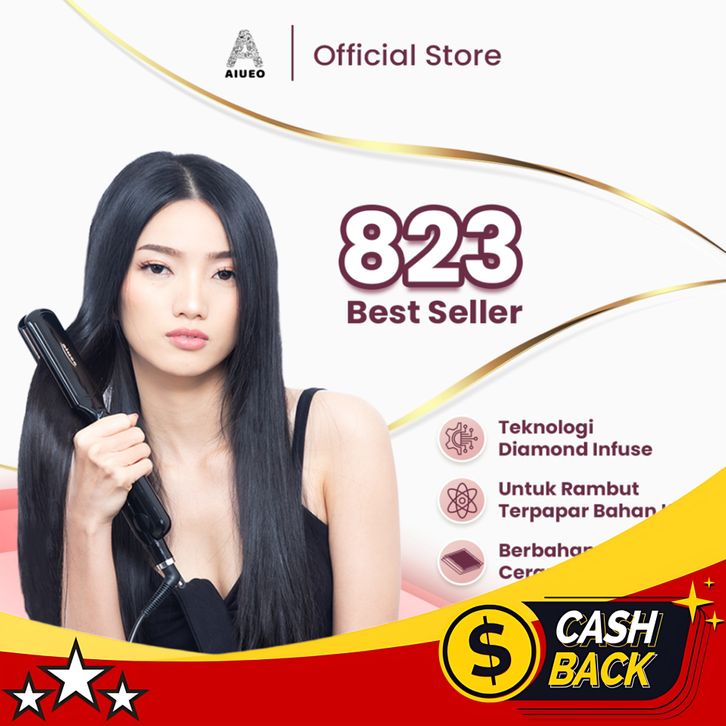 AIUEO Catokan Rambut 823 Alat Catok 3 in1 Meluruskan Keriting dan Blow Rambut Daya Rendah - Warna Hitam