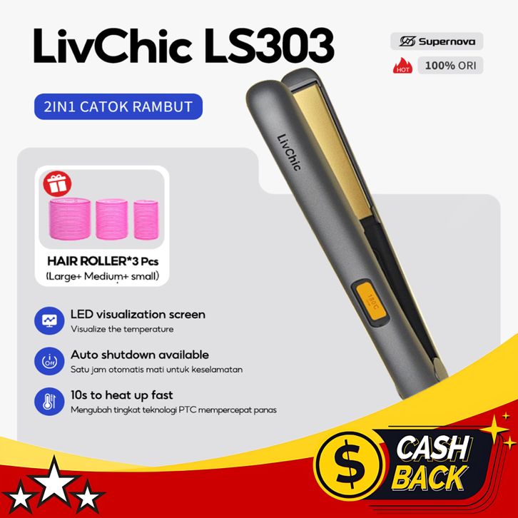 CICILAN HEMAT- Supernova x LivChic LS303 2IN1 Catok Rambut untuk Meluruskan dan Keriting Ringan Alat pengeriting