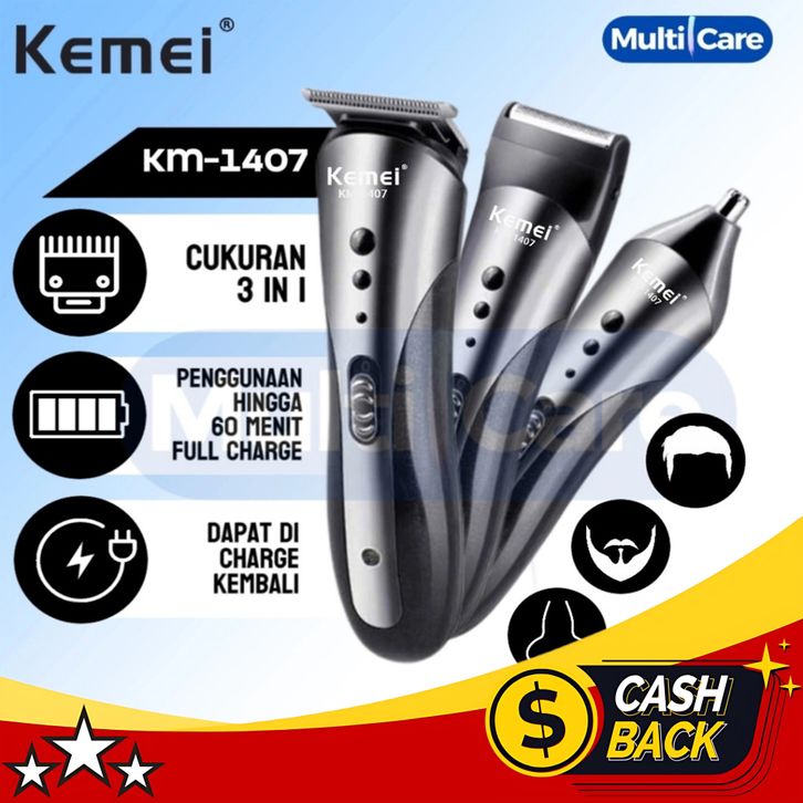 CICILAN HEMAT- KEMEI KM 1407 hair clipper alat cukur rambut kumis jenggot recharge