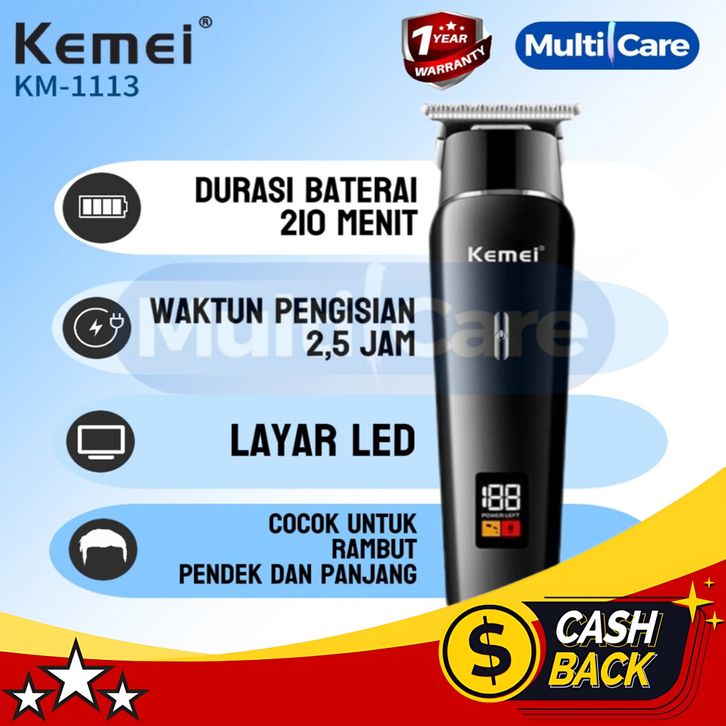 CICILAN HEMAT- Kemei KM 1113 Alat Cukur Rambut Portabel Profesional Low Noise, Rechargeable, Led Display