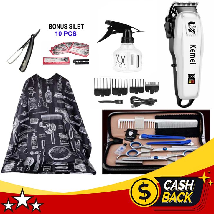 CICILAN HEMAT- Paket Alat Cukur Rambut Elektrik Profesional Barbershop Gunting Rambut Gunting Sasak Set Potong Rambut