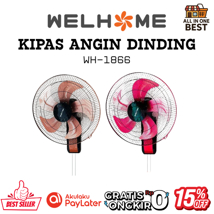 Kipas Angin Dinding Welhome WH-1866 18 Inch Premium Edition Wall Fan Terbaru Kekinian Angin Kencang Termurah Best Seller