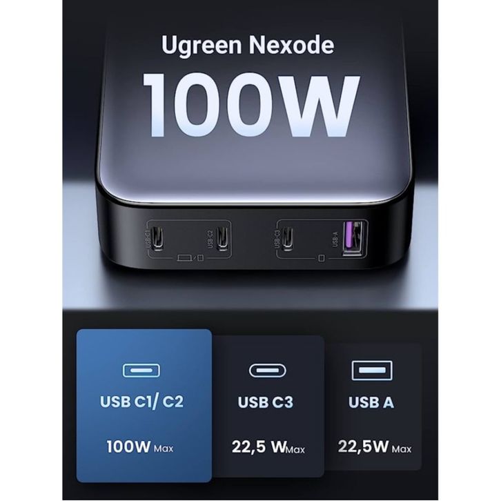 UGREEN Desktop Charger GAN 4-Port For Macbook Laptop Fast Charging 100W 90928