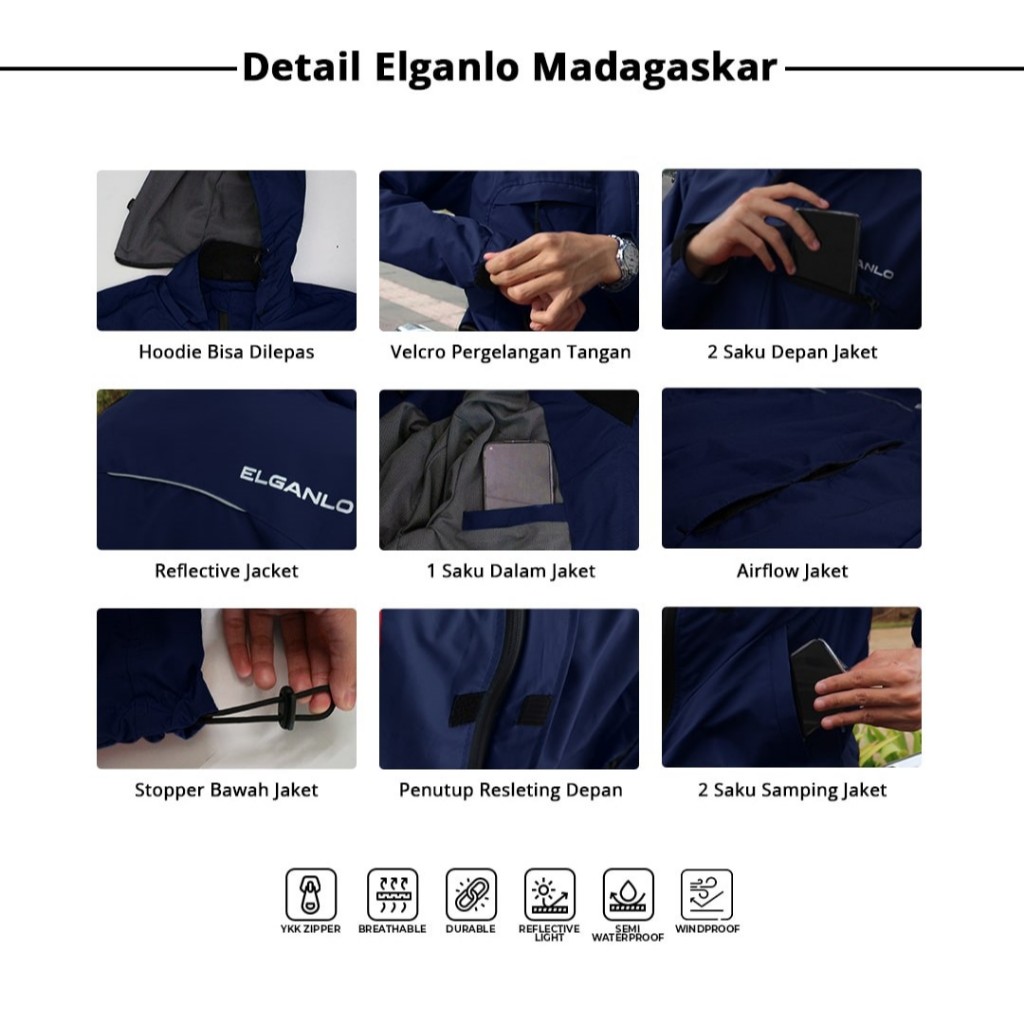 ELGANLO Madagaskar Jaket Parasut Motor Touring Harian Windbreaker Waterproof Blue Unisex
