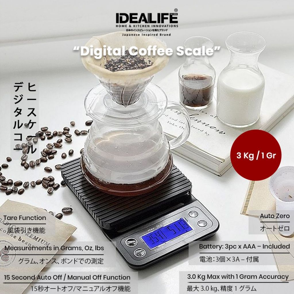 TIMBANGAN KOPI DIGITAL 3KG IDEALIFE COFFEE SCALE 3KG 0.1GR IL–500C
