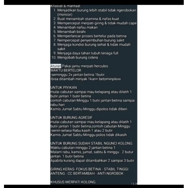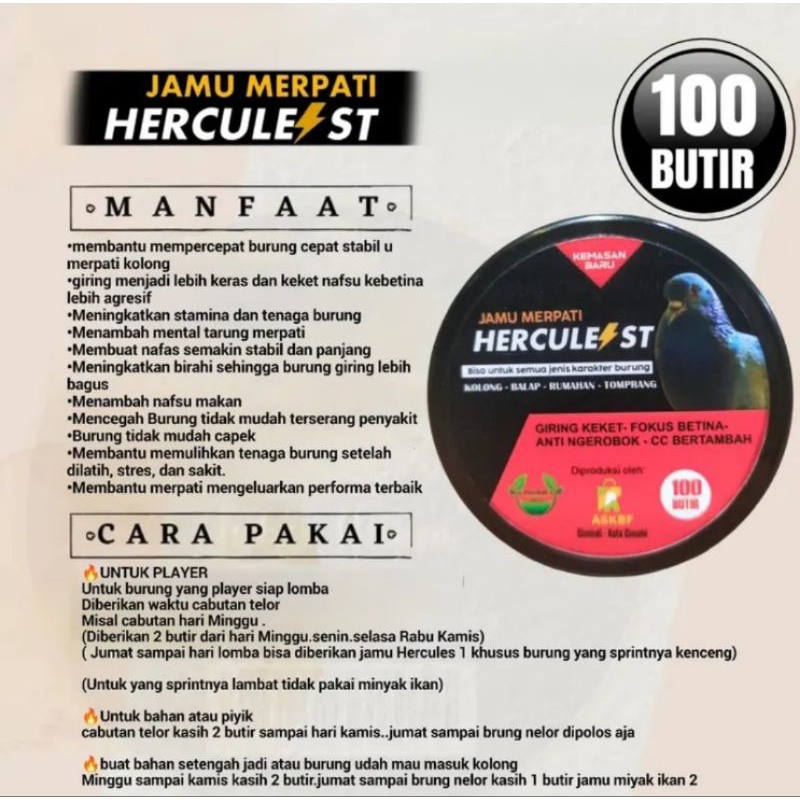 Jamu Merpati Hercules 100 butir untuk merpati tinggian ,merpati kolong, merpati balap & merpati tomprang bonus sampo mer